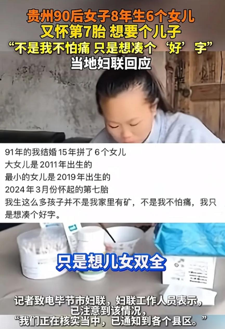 爲什麼要懷第7胎呢?主要是自己前面生了6個女兒,就希望再生個兒子,能夠拼個兒女雙全!