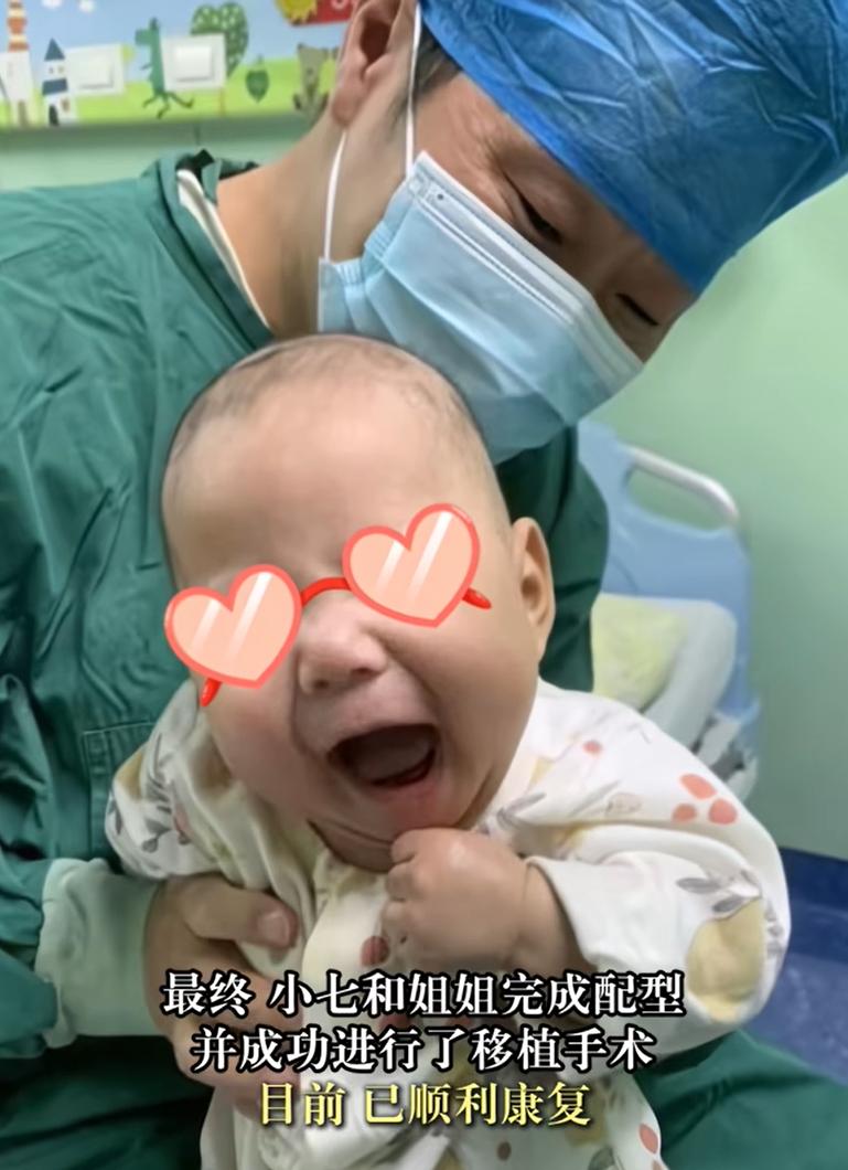 幸好醫生說這種白血病是可以進行骨髓移植的,經過配型發現孩子9歲的姐姐跟弟弟的骨髓是匹配的,而9歲的姐姐也非常的勇敢說要給弟弟捐獻骨髓!