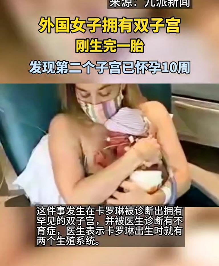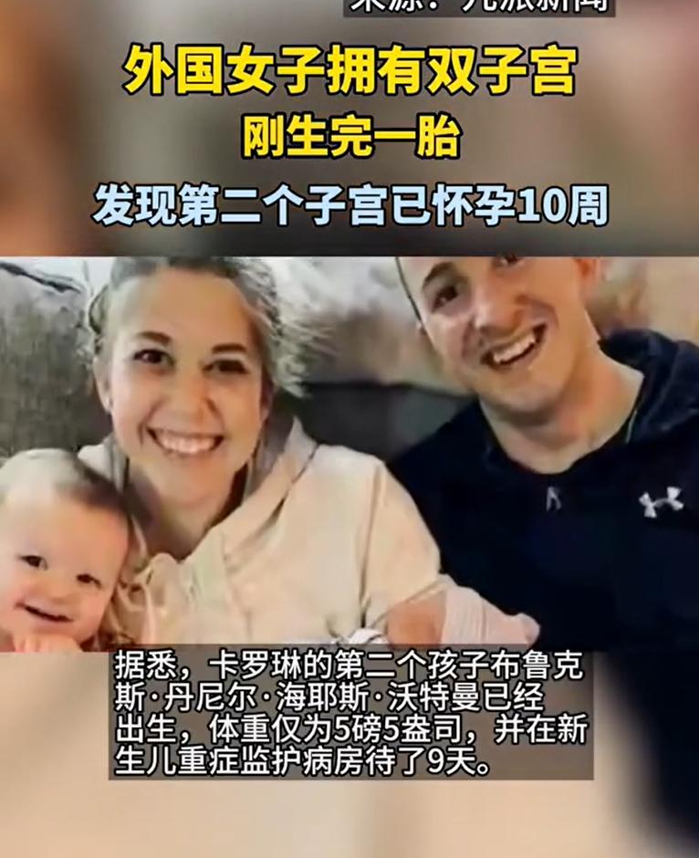 爲什麼出現這麼匪夷所思的事情?原來卡羅琳她是有雙子宮的,她的第1個孩子是生長在其中的一個子宮,估計卡羅琳在孕晚期的時候分泌出了一顆卵子,而這個卵子恰恰好碰到了精子,然後結合形成了受精卵。