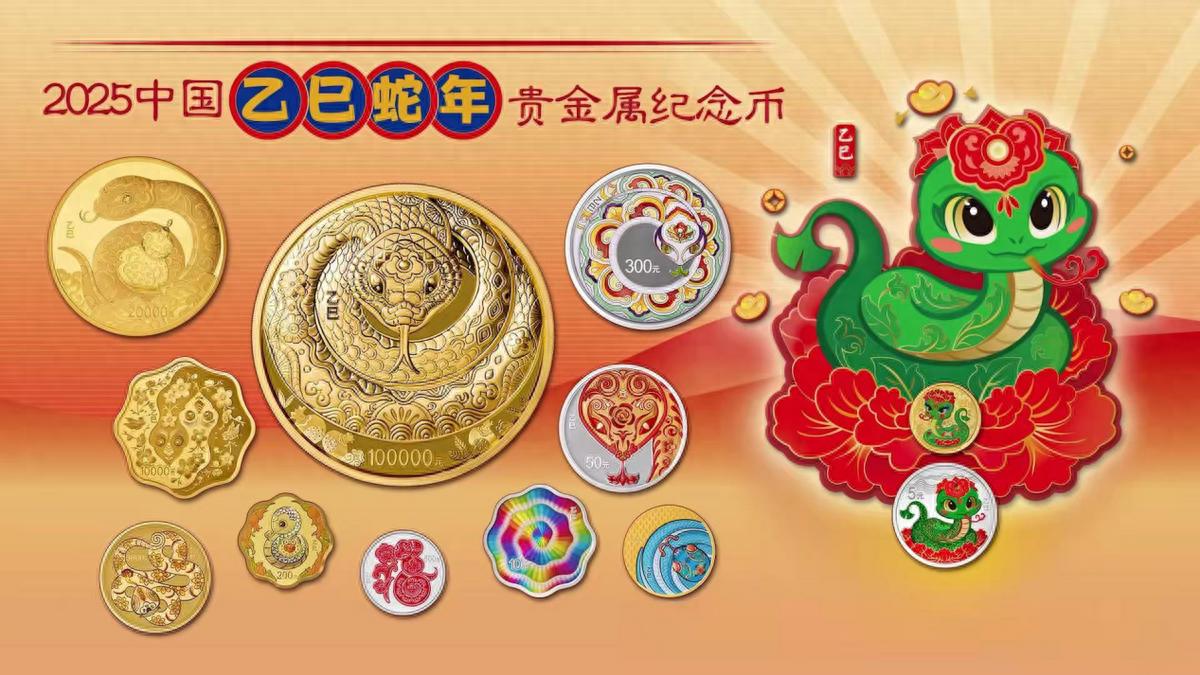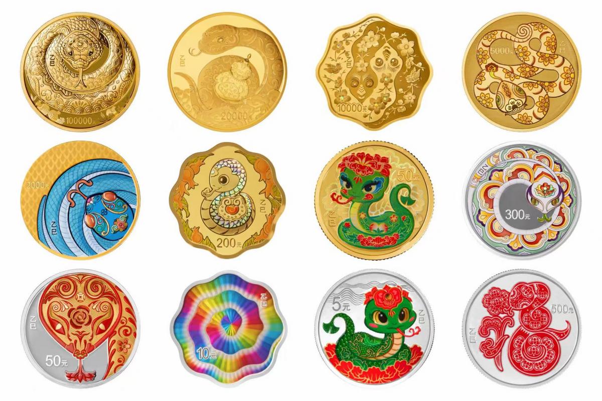 中國人民銀行發行的2025乙巳(蛇)年貴金屬紀念幣,一套包含12枚,分爲金、銀、鉑3種材質。