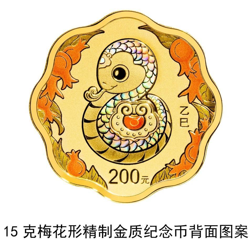 呼聲很高的15克梅花形精製金質紀念幣,背面圖案是葫蘆造型的小蛇,看起來靈動自由,蛇身中心鑲嵌一枚如意,寓意着吉祥長壽,四周搭配石榴紋飾,象徵着多子多福。