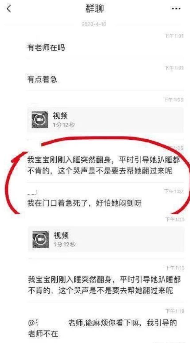 之前有一個新手媽媽加入了某個機構的“付費睡眠引導羣”,在羣裏面被專家和其他媽媽指導,導致孩子趴着睡的時候一直哭,專家卻建議媽媽不要管,說孩子一定能夠靠自己的力量翻回來,媽媽就真的狠心聽着孩子哭了兩個小時,後來發現孩子不哭了,媽媽去看的時候孩子已經窒息死亡了。