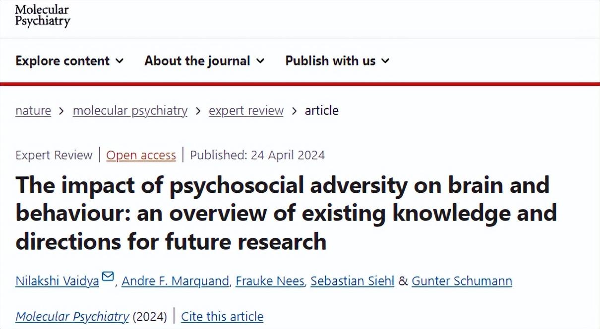 德國柏林夏裏特醫學院的科學家們在《自然》旗下的子刊《分子精神病學》發表了一篇論文,就提到了逆境對大腦和行爲的不良影響,最終的研究結果是:早年喫苦後果很嚴重。