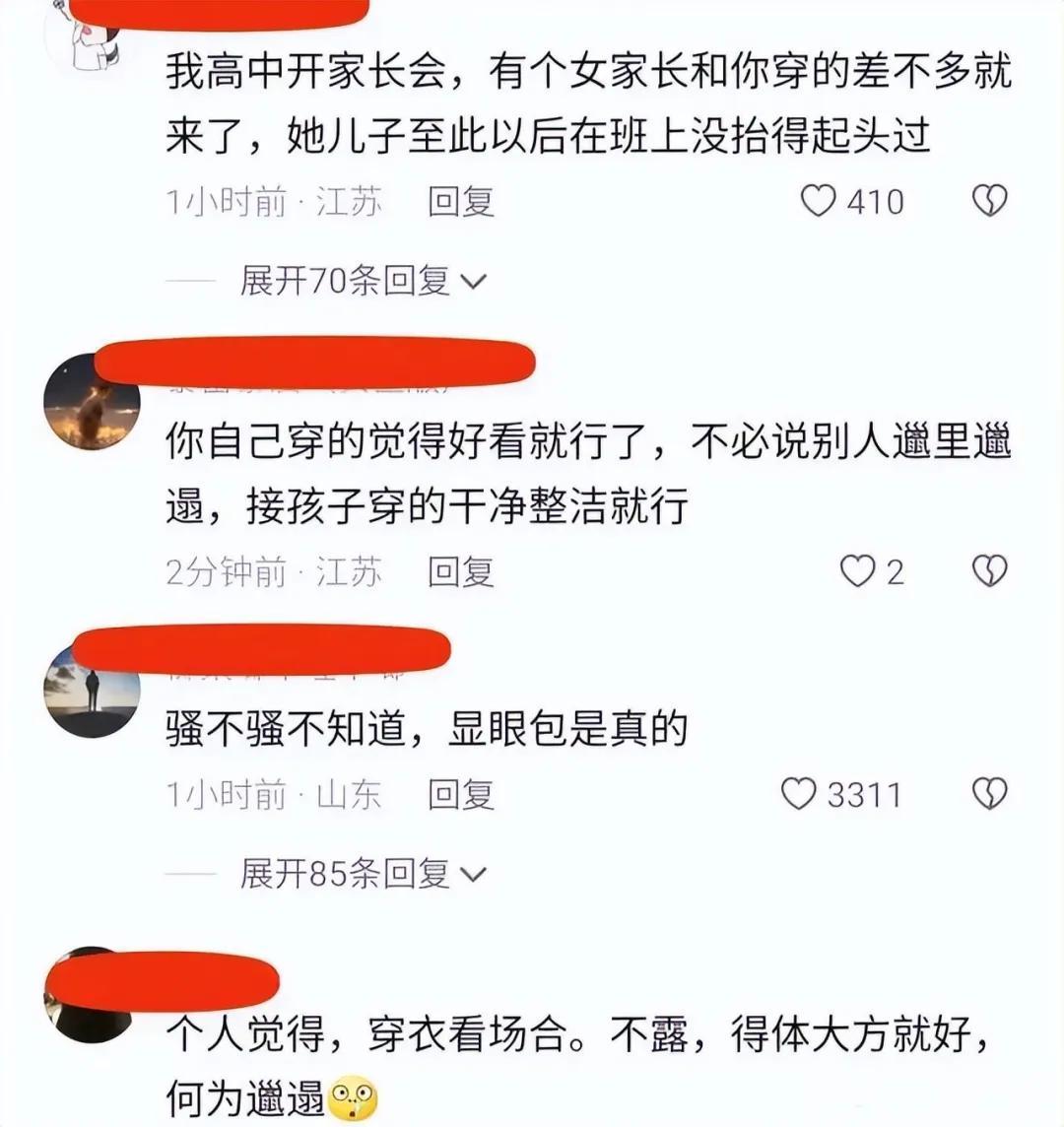 “咱們班有一位媽媽接孩子放學穿着太暴露了,嚴重影響我們的孩子!”