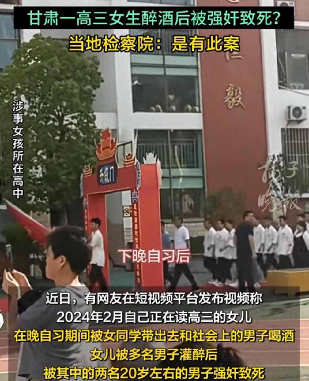 最近甘肅一個高三的女生,在晚自習期間被同學拉出去喝酒的時候被多人灌醉,然後同學把她帶到了校外男生的出租屋裏面,結果遭到兩名20歲左右的男士的強姦最後致死的新聞衝上了熱搜。