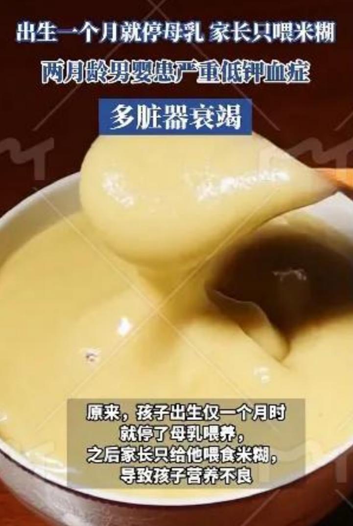在搶救的同時就瞭解孩子的餵養情況,原來孩子在剛一個月的時候就停了母乳,家長只給孩子喂米糊,其他的奶粉都沒有喂,在家長看來喂米糊也是很營養的。