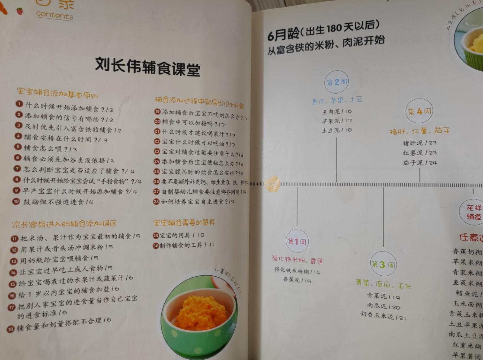 而且這本書裏面包含了寶寶從6個月開始添加輔食一直到3歲每一個月齡的輔食安排,家長們只要照着孩子的月齡去選擇對應的食譜去給孩子做,就能做出合適孩子喫的色香味俱全的輔食,讓孩子喫了長得快,更聰明。