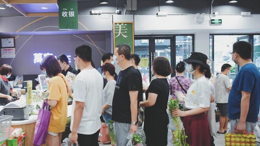 就快要輪到我們了,突然一個男人急匆匆地直接插隊到了收銀員面前,小女孩手裏拿着選購的零食,肯定也是着急要喫的,她大聲說:“媽媽,他插隊……”