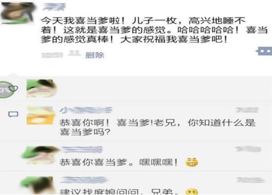 喜得千金奶爸發朋友圈:喜當爹,感謝兄弟們!老婆:不刪除就離婚