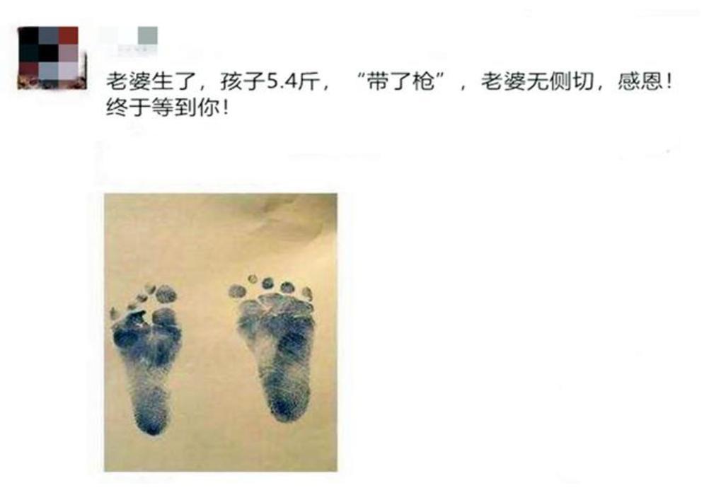 一個新晉的奶爸發孩子的朋友圈就提到:終於當爸爸了,感謝自己種下的種子,成功開出了結果,兒子重6斤4兩,看起來種子質量棒棒的,感謝爸爸媽媽,感謝醫生,感謝所有的親戚朋友。