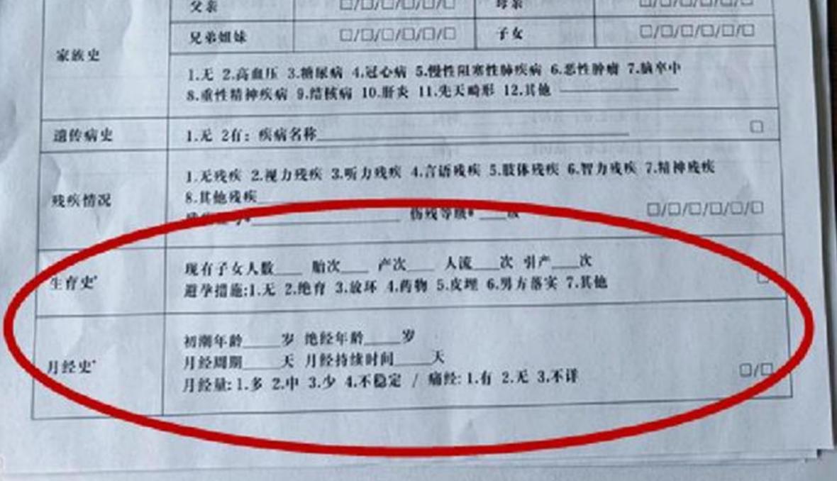 之前在網上看過一個學校的調查問卷,不僅僅問家長的家族史,遺傳病史和殘疾情況,還會問家長的生育史以及月經史,讓人覺得匪夷所思。