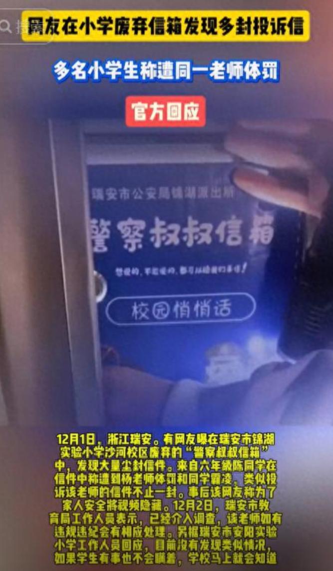 比如瑞安市一所小學有多個學生投訴老師打人,學生受到霸凌。