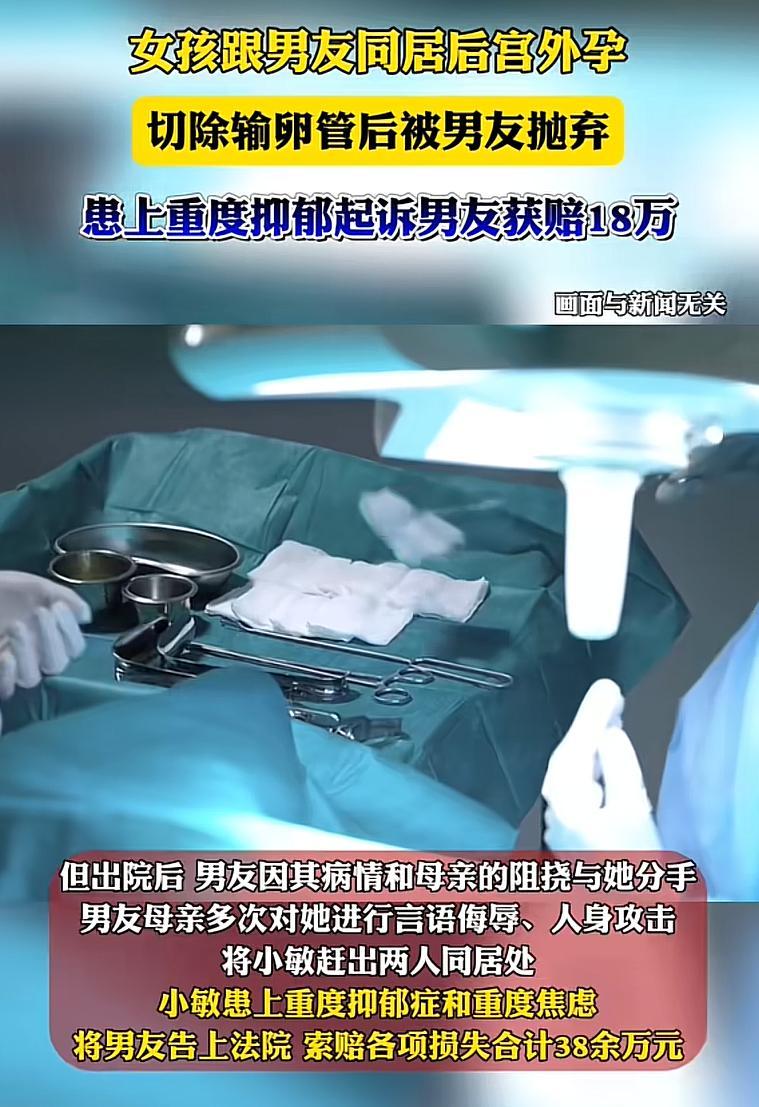 女孩宮外孕切輸卵管被拋棄,向男友索雙重賠償,男友:她多次打胎
