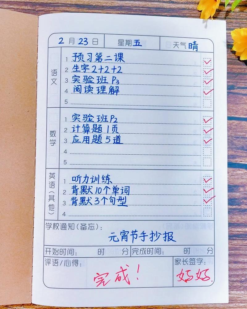 如果孩子完成一個科目的作業,就要幫他記錄實際用時,這能幫助孩子提高寫作業的效率。