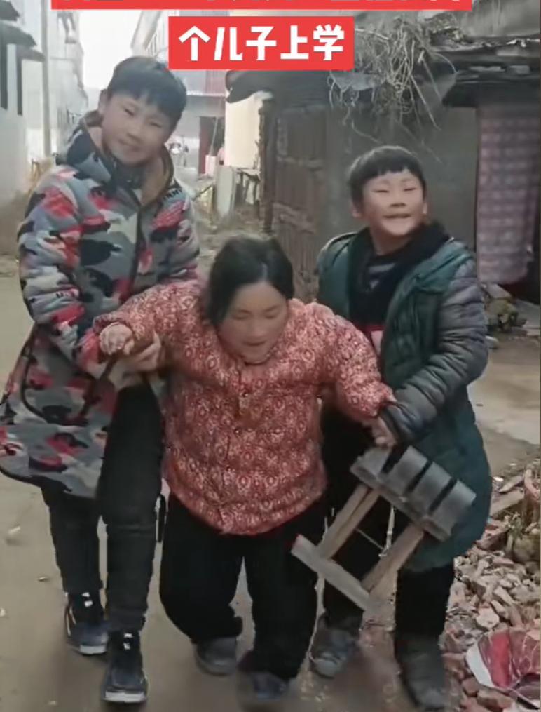 結婚的時候因爲自己先天殘疾,所以找了一個有點智力障礙的丈夫,最終生下了兩個孩子,大兒子已經15歲了,小兒子11歲,兩個孩子都要比媽媽高很多!