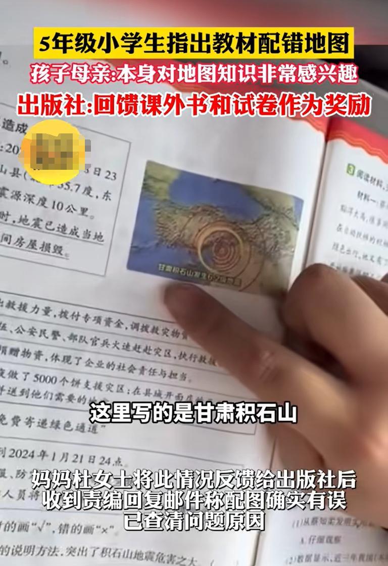 而孩子在這一大堆的教材裏面居然發現了這麼個小小的錯誤,出版社也非常的感激孩子,於是就給孩子寄了一些課外書和事件作爲獎勵。