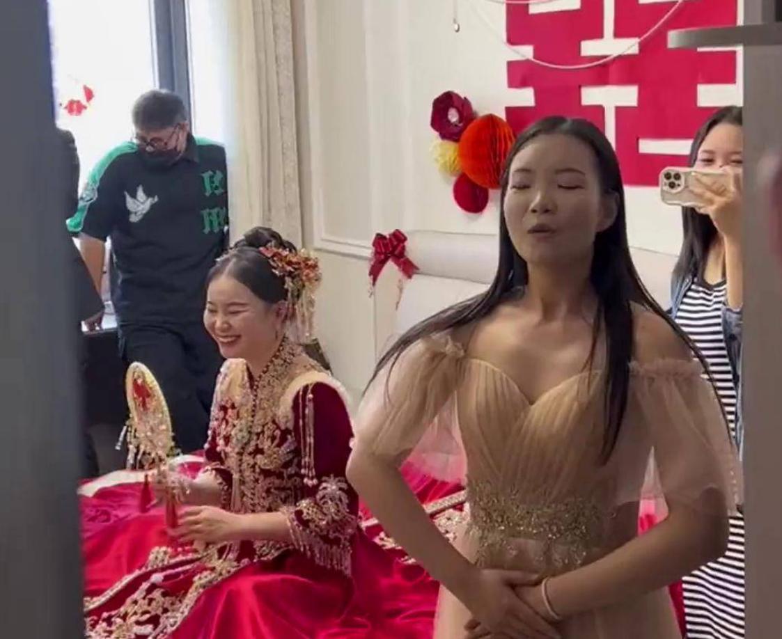 網上看到一個接親的現場,沒有看到新娘,但是伴娘卻是在網上直接火了,被人稱爲最美的伴娘。