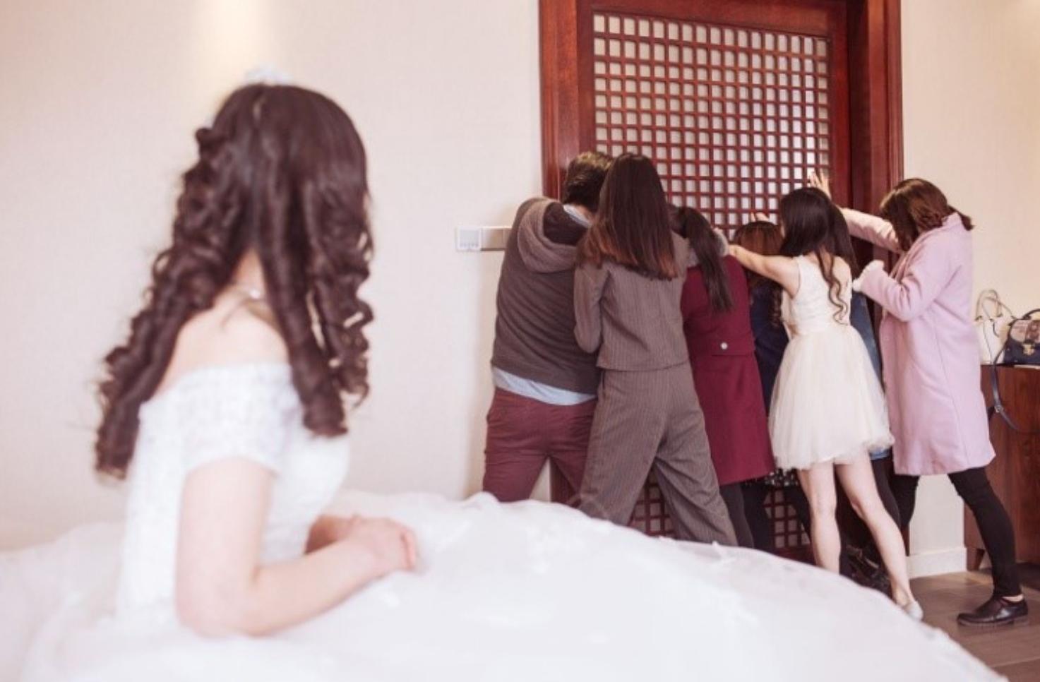 而在堵門的時候,不僅僅是好姐妹能堵住門,而且很多還會設置各種遊戲或者關卡,避免新郎過快的進入到房間。