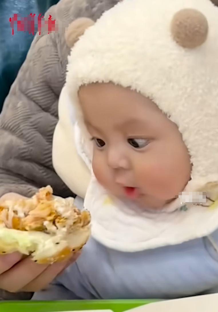 “最饞嬰兒”火了,看到漢堡兩眼放光口水直流,脖子伸長,萌到爆