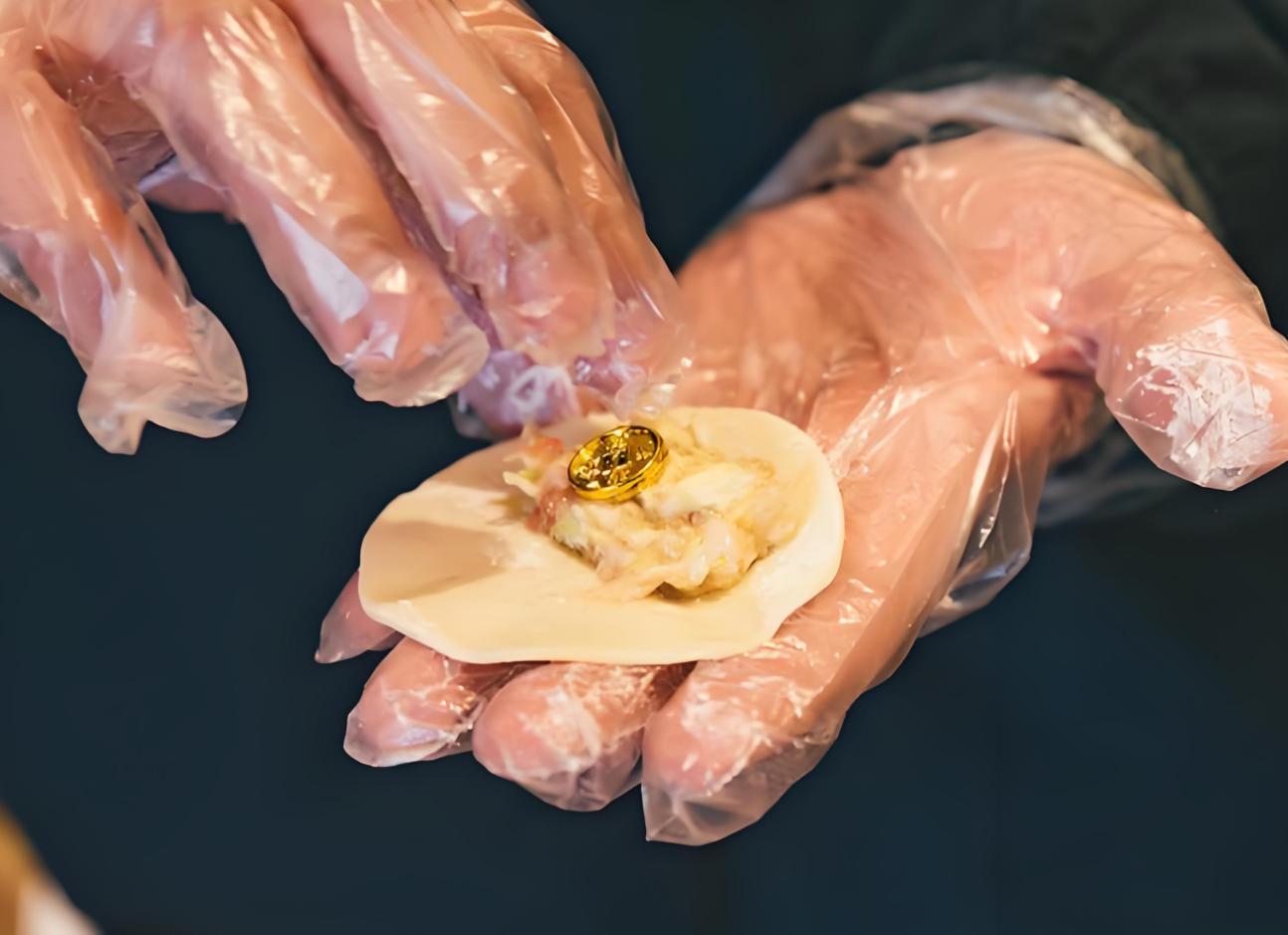 剛好把金幣包到餃子裏面,過年的時候喫出金幣,來年自己的兒子媳婦肯定是財源滾滾,自己的孫子肯定也是健康成長。