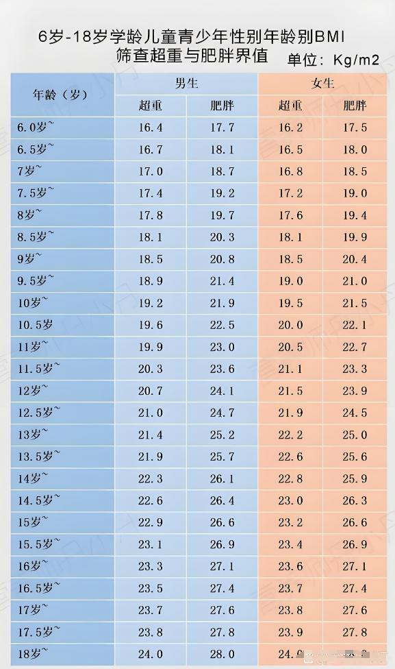 因爲現在孩子長得比較快,所以只按年齡的話是不太標準的,所以可以按照不同年齡的BMI指數就能準確的篩選出孩子到底是超重還是肥胖。