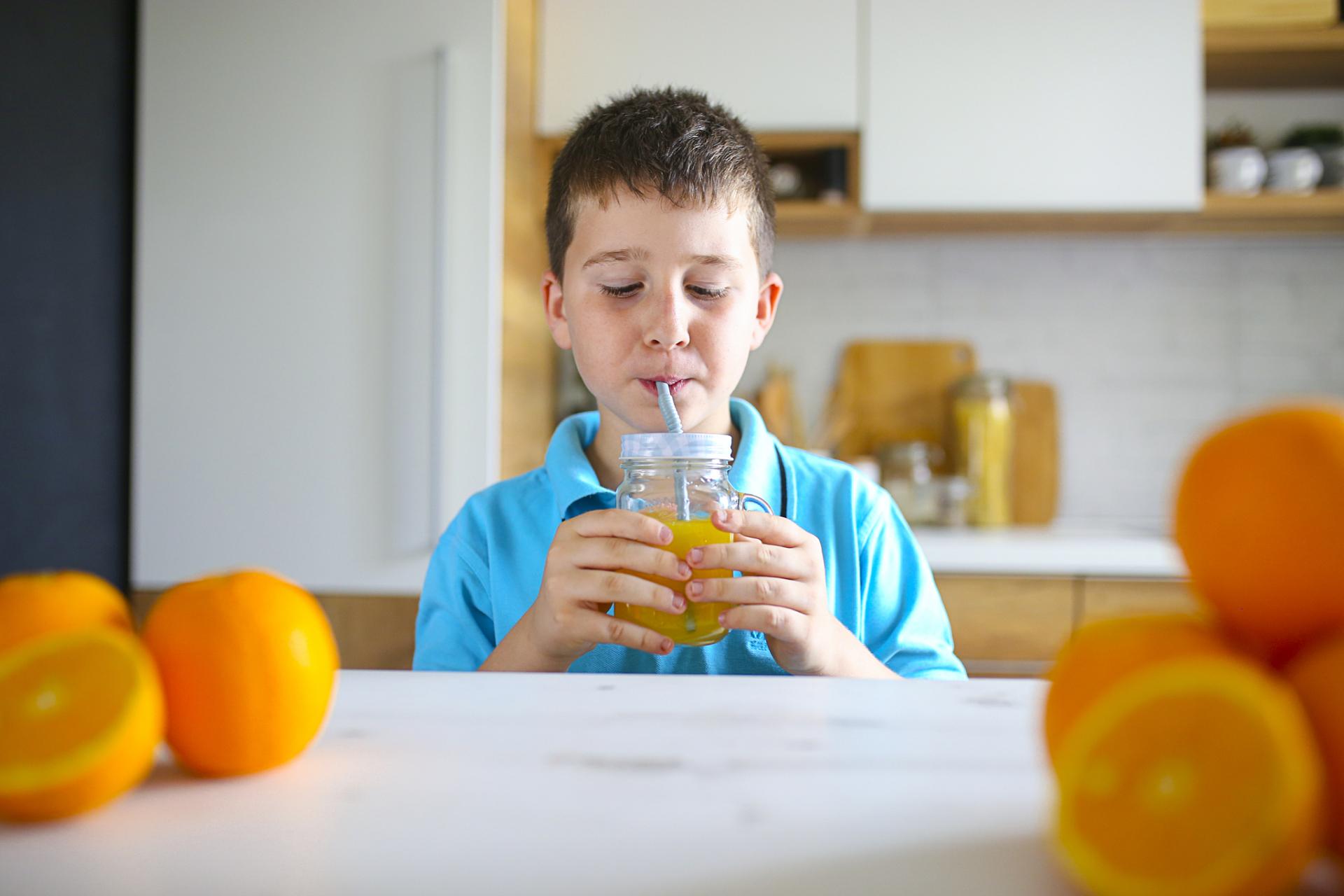 比如說奶茶儘可能不要給孩子喝,果汁也儘量不要讓孩子喝,因爲水果榨成果汁之後它的細胞壁會被破壞,裏面的果糖會完全的釋放出來,而且孩子喫水果可能只喫半個,但是榨成果汁他能喫三個水果榨成的果汁,無形中攝入的果糖就會增加,很容易導致孩子肥胖。