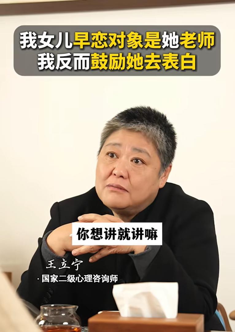 因爲女兒是喜歡補習班的,老師說這個補習班還有20多天就結束了,媽媽不希望女兒留下缺憾,她說老師也沒有結婚,你也沒有嫁,你可以跟他表白,跟他表白主要是瞭解清楚,他到底是不是喜歡你,不要讓人生留遺憾。