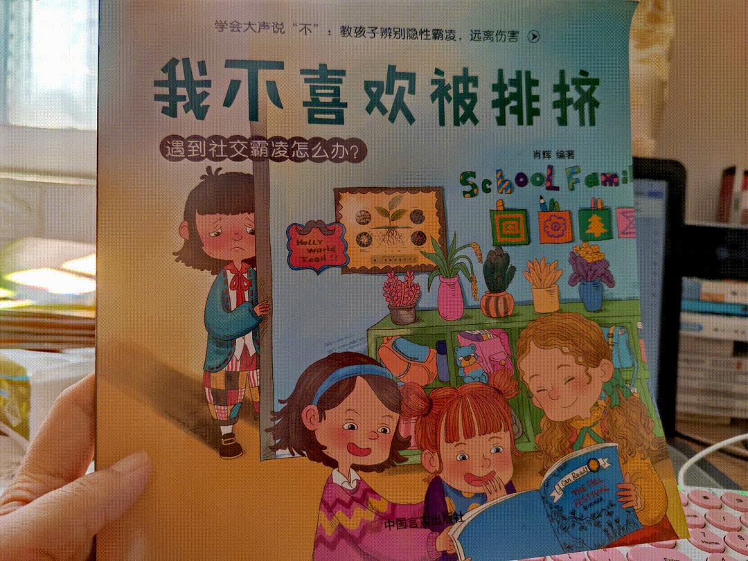 像我家兩娃用的是一套叫《反霸凌啓蒙繪本》的繪本,他們不認識的字的時候,我就經常給他們讀,還演練過很多遍,所以我家兩個娃沒被人欺負過。