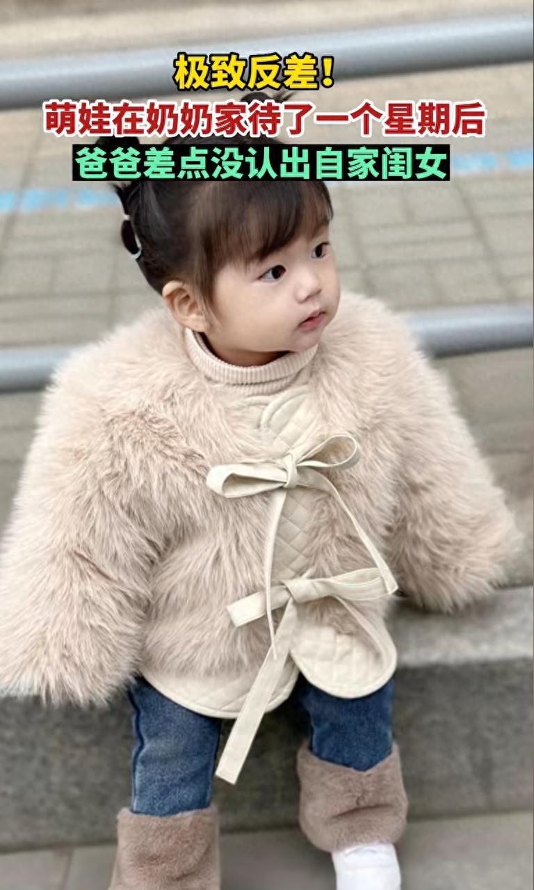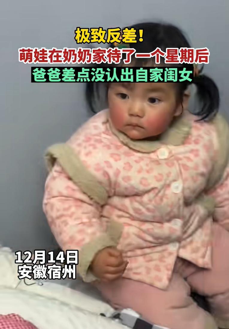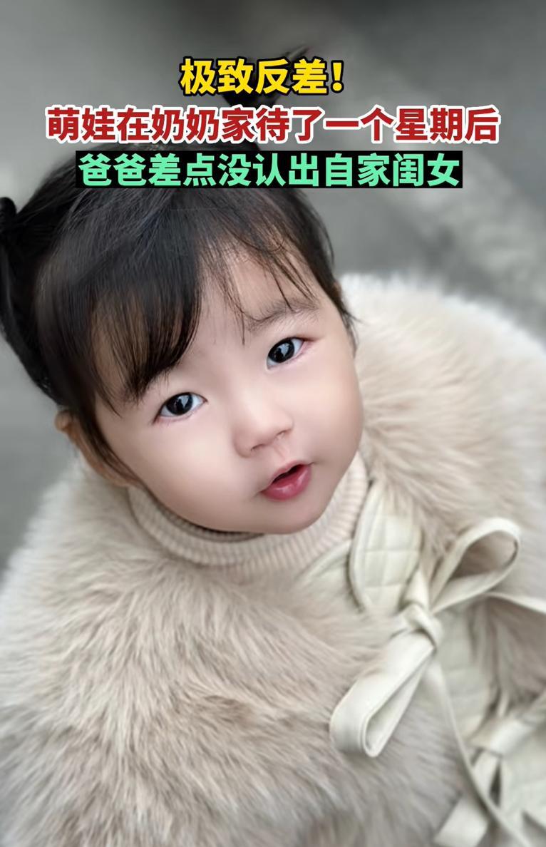 萌娃送去奶奶家一週彷彿被調包,爸爸認不出,網友:公主變村姑