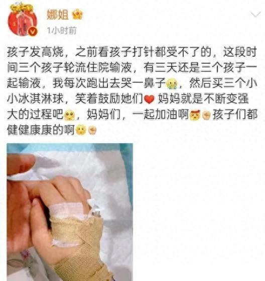 謝娜提到自己的三個孩子因爲發高燒,輪流住院輸液,有三天還是三個孩子一起輸液,看到孩子這麼受罪,謝娜覺得非常的難受,每次都會跑到外面偷偷地哭一會,然後買三個小的冰淇淋球,笑着鼓勵孩子們。媽媽就是不斷變強大的過程吧。