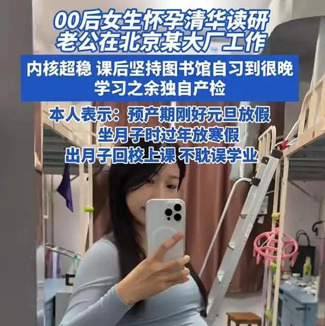 她是00後,也就23歲吧,特殊的是,她是清華大學在讀的學生,一邊讀研一邊懷着寶寶,真是生娃和學習兩個都不耽誤,不得不讓人佩服。