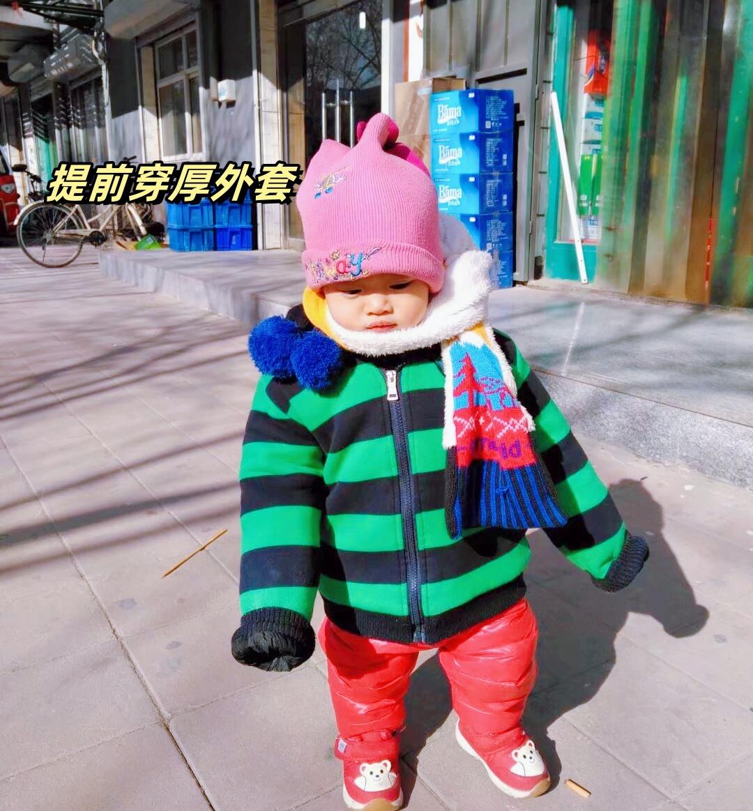 比如,如果室內溫度是22℃,室外是0℃,那出門前就要給寶寶穿上厚外套、帽子和手套。