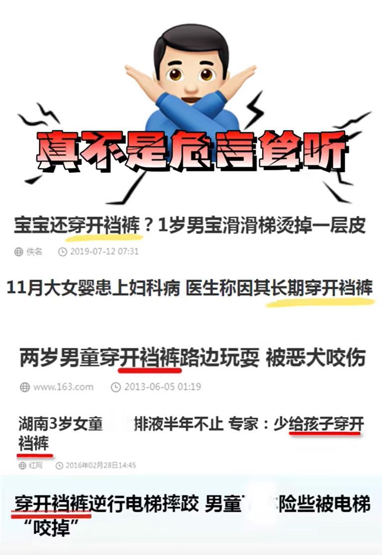 這些都是比較嚴重的,而其實孩子在穿開襠褲的時候,他也會坐在地上,他也會到處去爬,到處去蹭,而這些地上可能會有尖銳的東西,還有可能會有各種病菌,這些都是潛在的危害。