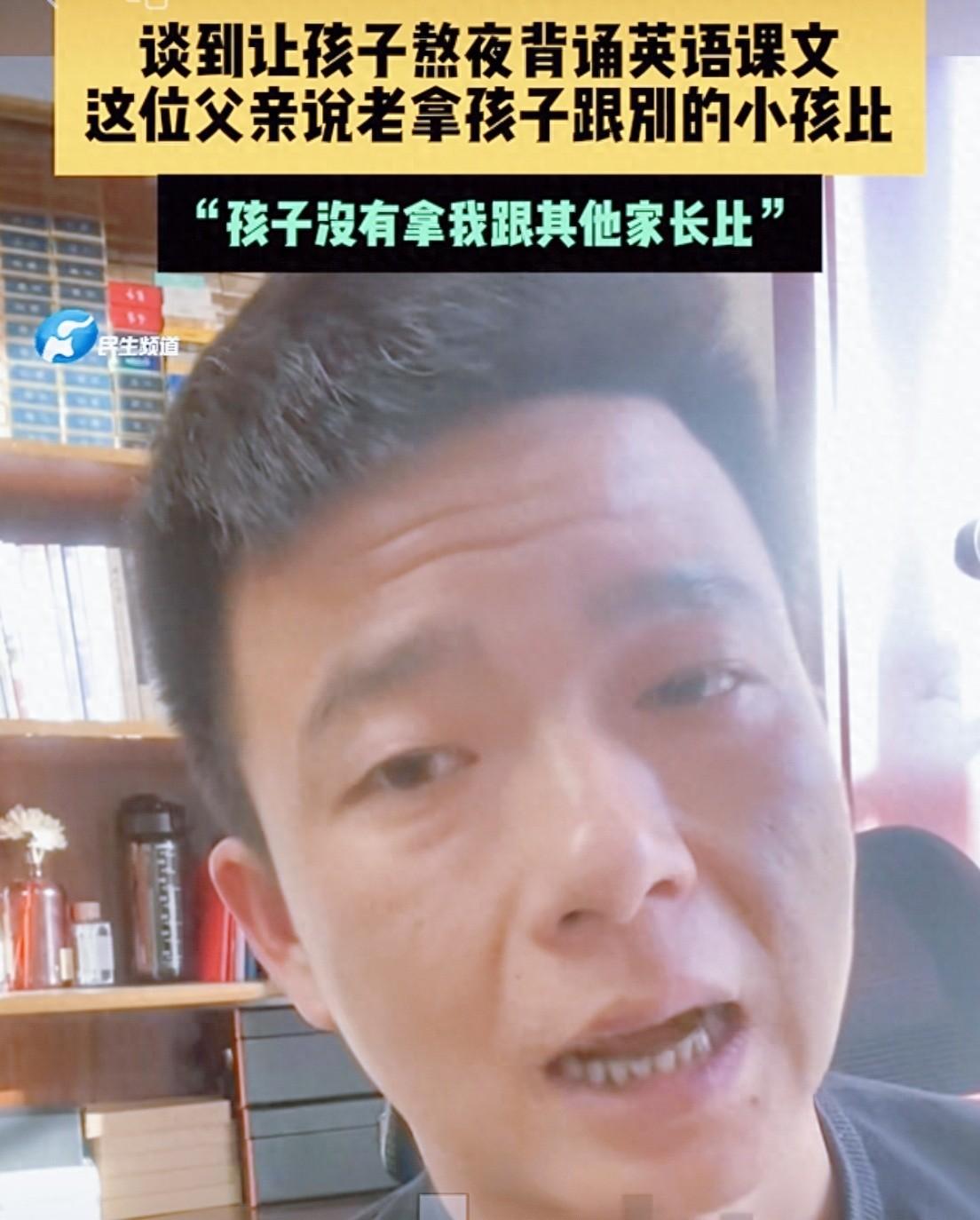就像我前陣子看到一位陝西90後爸爸哭着錄視頻,覺得自己不應該強迫孩子熬夜背英語課文,還反思自己“總拿孩子跟別的小孩比”。