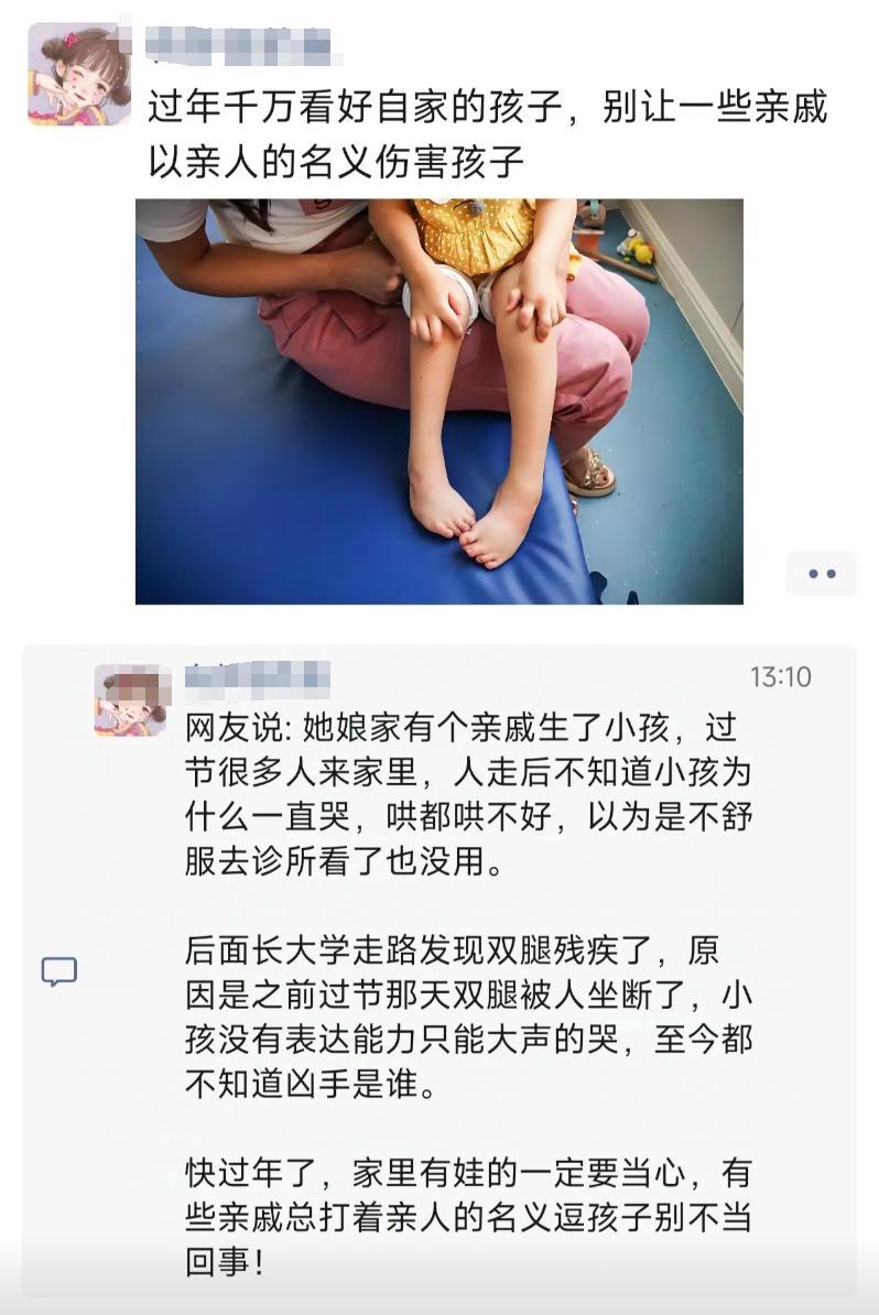 媽媽纔想到那一次坐月子的時候有很多親戚來看望,其中有一個熊孩子坐到牀上跟孩子玩玩的時候,可能就不小心坐到孩子的腿上了。當時她還不以爲然,因爲孩子當時沒哭,萬萬沒有想到就是那一下子把孩子的腿都給坐骨折了。