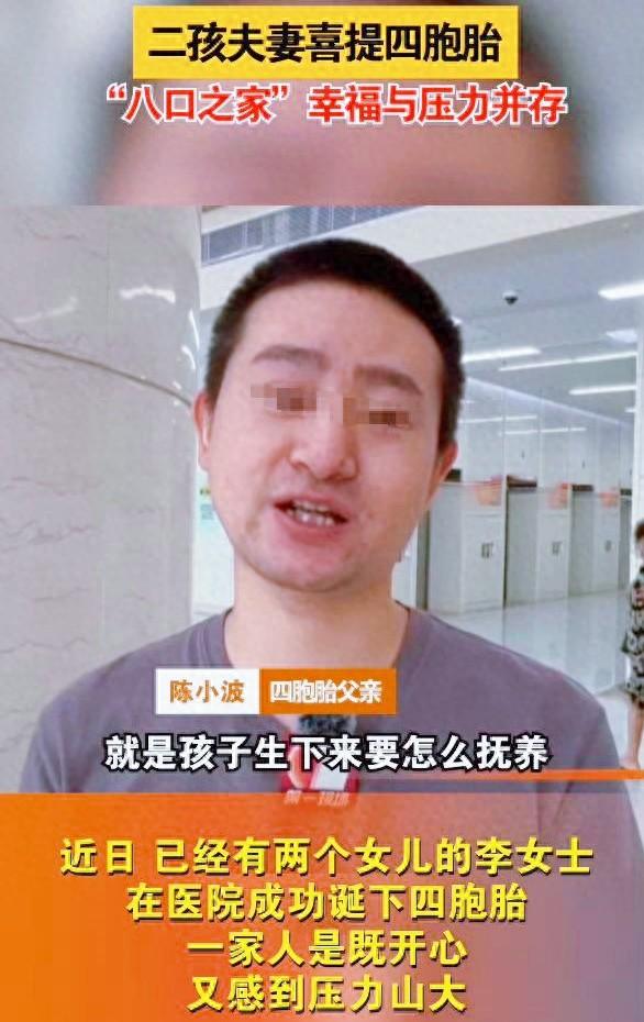 他們夫妻住在兩室一廳的出租屋,孩子父親陳小波一個月才五六千塊錢的工資,原本他們已經有兩個女兒了,打算生三胎,沒想到三胎居然是4個娃。
