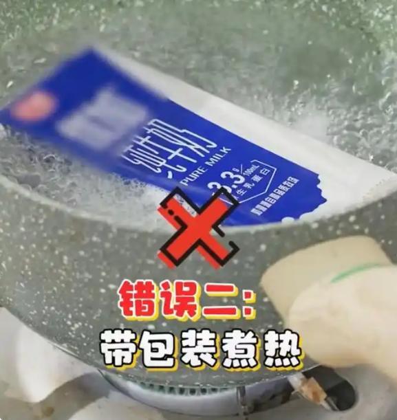 很多家長覺得,牛奶盒是密封的,直接放在鍋里加熱應該沒問題。其實,這種方法非常危險!
