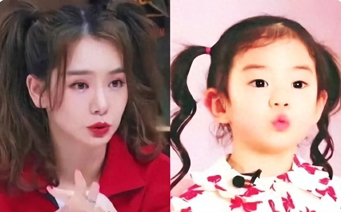 有一次,戚薇在節目裏模仿Lucky扎着丸子頭,那神態、那模樣,活脫脫就是大版Lucky,網友們紛紛感嘆基因的強大。