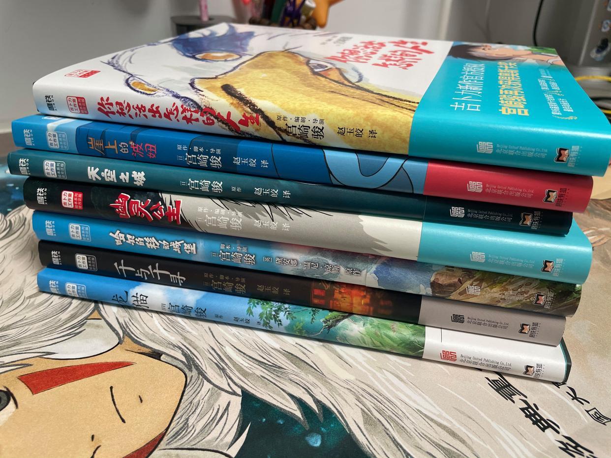 《龍貓》《千與千尋》《哈爾的移動城堡》《崖上的波妞》《天空之城》《你想活出澤陽的人生》《幽靈公主》,《幽靈公主》是剛出版的,還熱乎呢!