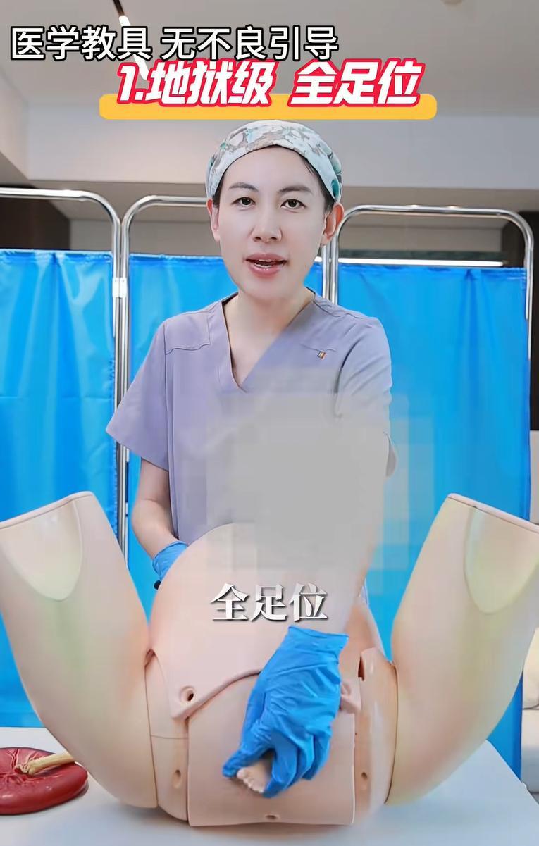 婦產科牛諍醫生用模型演示了順產的三個等級