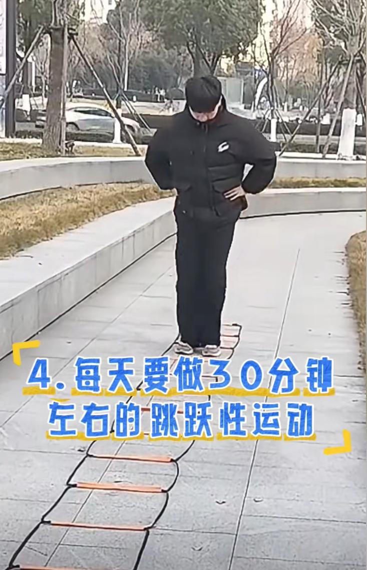 我們建議每天戶外運動一個小時,但其中有30分鐘建議是做一些跳躍性的運動,比如說孩子喜歡打籃球的話就讓他打籃球,因爲打籃球的時候會跳起來投籃,如果孩子不太喜歡打籃球的話就可以培養孩子跳繩,不喜歡跳繩的話就可以買一個摸高器讓孩子去摸高,或者說是開合跳等等。