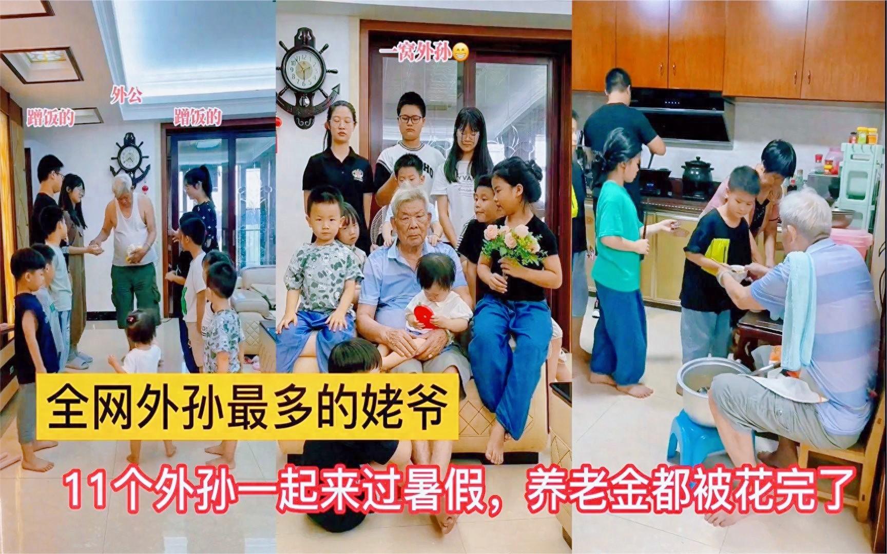 網上有位70歲的大爺火了,他超“富有”,一共有十幾個外孫。一到暑假,孩子們就都上門報到了。