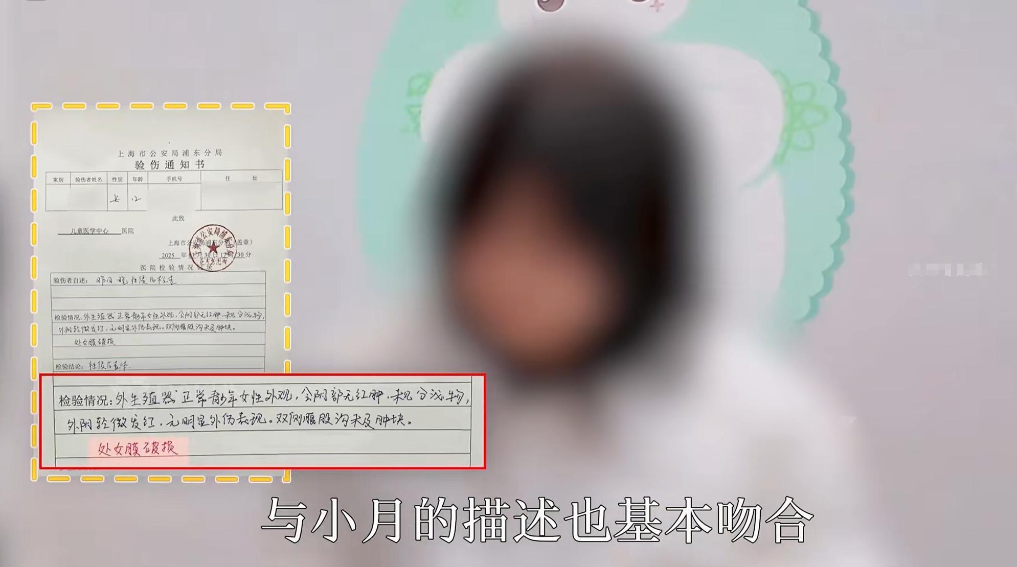 媽媽也打電話讓爸爸回來,爸爸卻說沒時間,媽媽就打電話讓哥哥回家,哥哥帶着12歲的小月到三甲醫院去驗傷,主要是看自己的妹妹有沒有受傷。