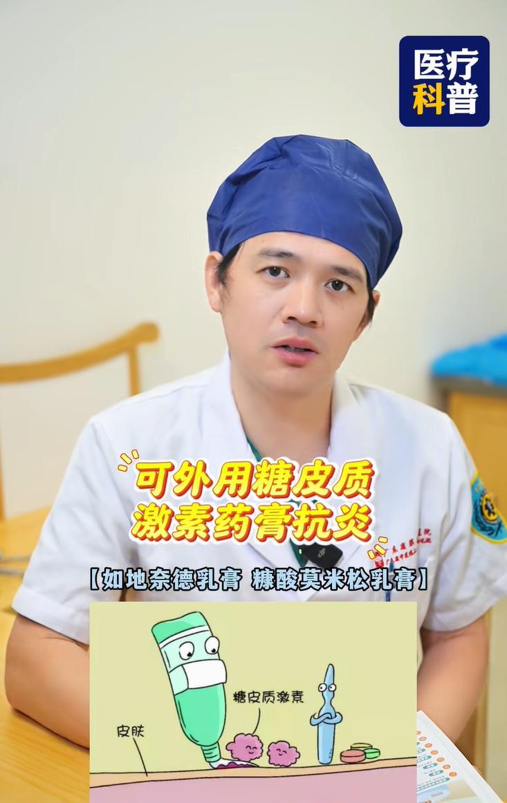 雖然前面兩個處理已經很到位了,但有可能是處理的時間不夠,或者是拖太久才處理,或者是有些人皮膚比較敏感,皮膚上也會出現紅斑和丘疹,這時候就要及時中和這些毒素了,可以用一些激素藥膏,比如說地奈德軟膏之類的可以起到抗炎的作用,避免瘙癢或者更加嚴重。