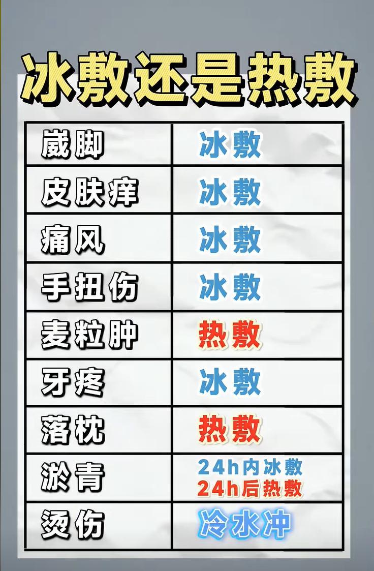 而有醫生也曾經科普過不同的傷我們要怎麼處理?哪些是需要熱敷的?哪些是需要冷敷的?一定要清楚,如果自己自以爲是還可能會坑了自己。