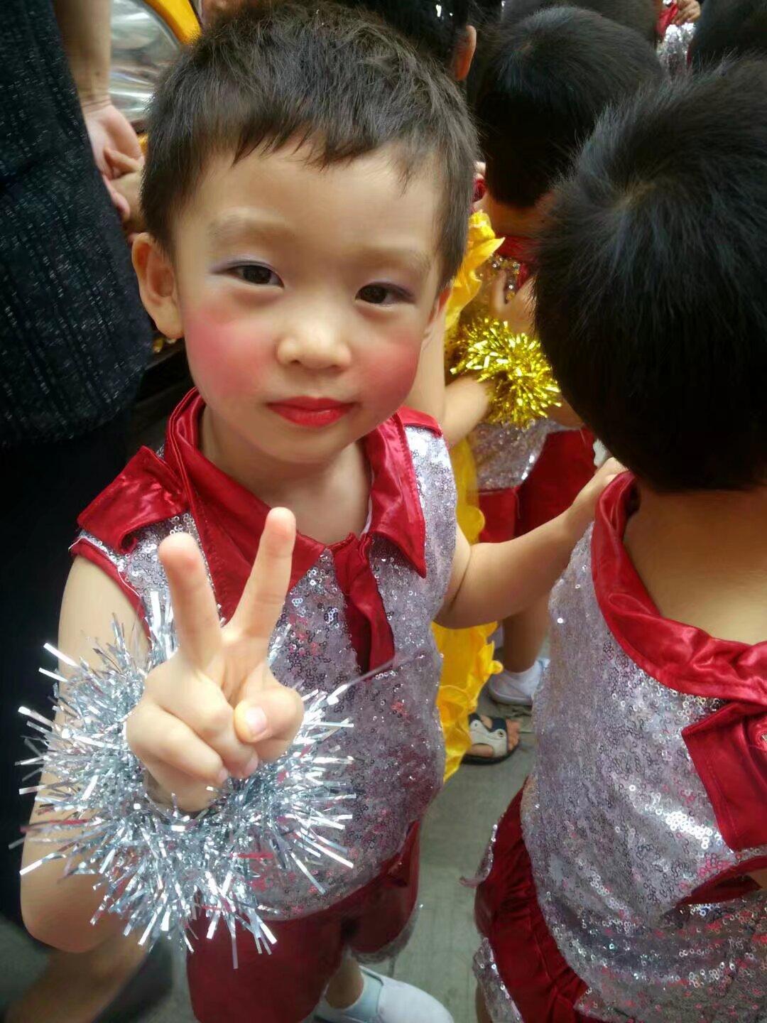我記得我兒子當年第一天上幼兒園,放學我去接他的時候。