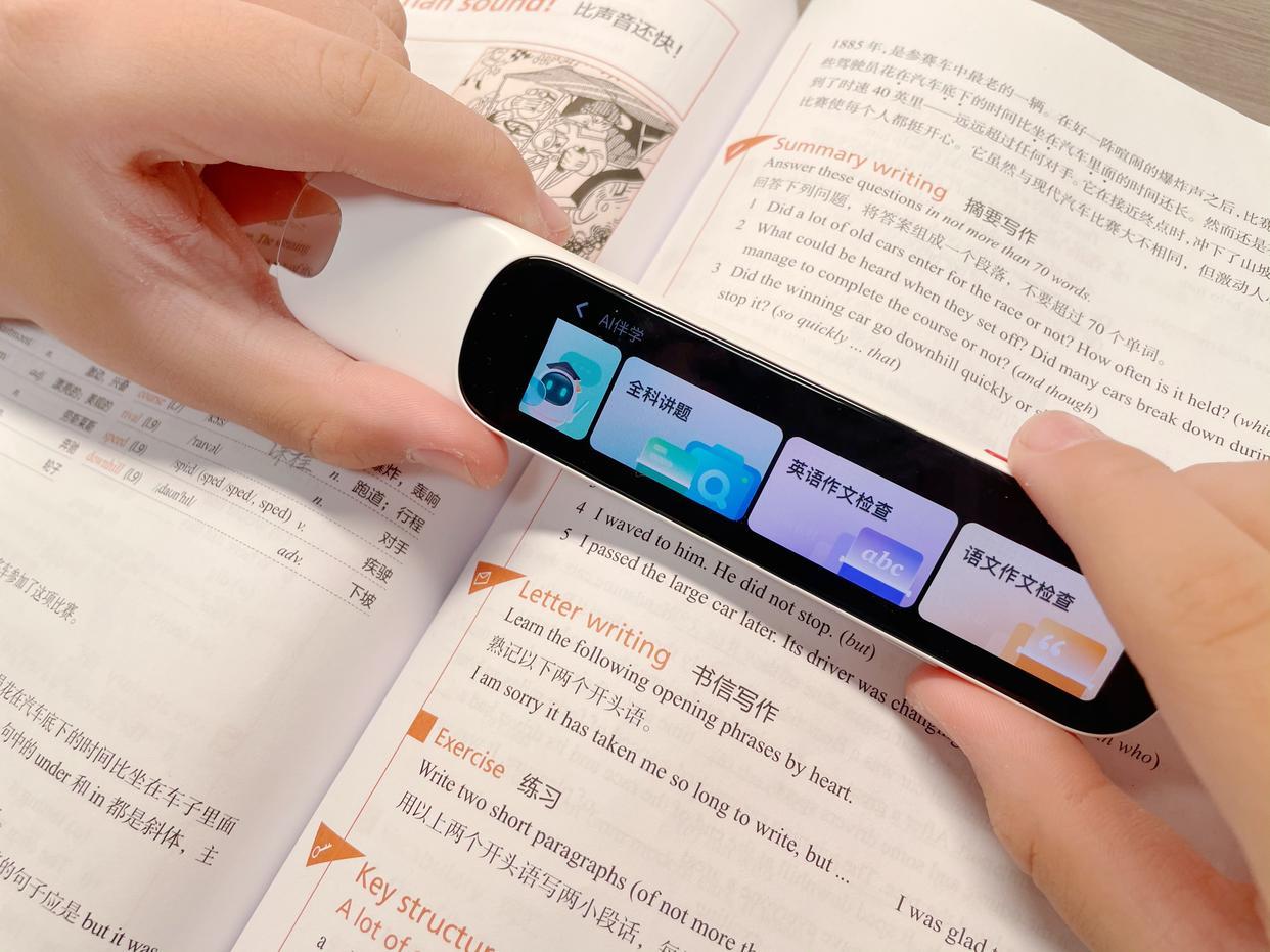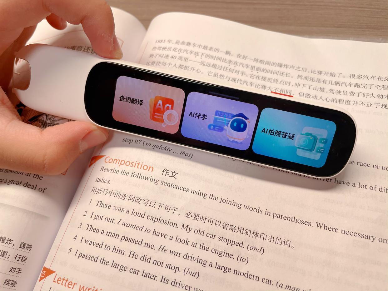 這款詞典筆能 直接拍照翻譯,比如300多字的大段落,拿起來對着一拍,譯文就出來了,而且拍照時能遠近景切換,還能跨頁拍,除了拍教材、課外書上的內容,黑板、電腦上的內容也支持,相比費事費勁兒的傳統“掃描式”掃查,這款要便捷的多,效率嘎嘎提升!