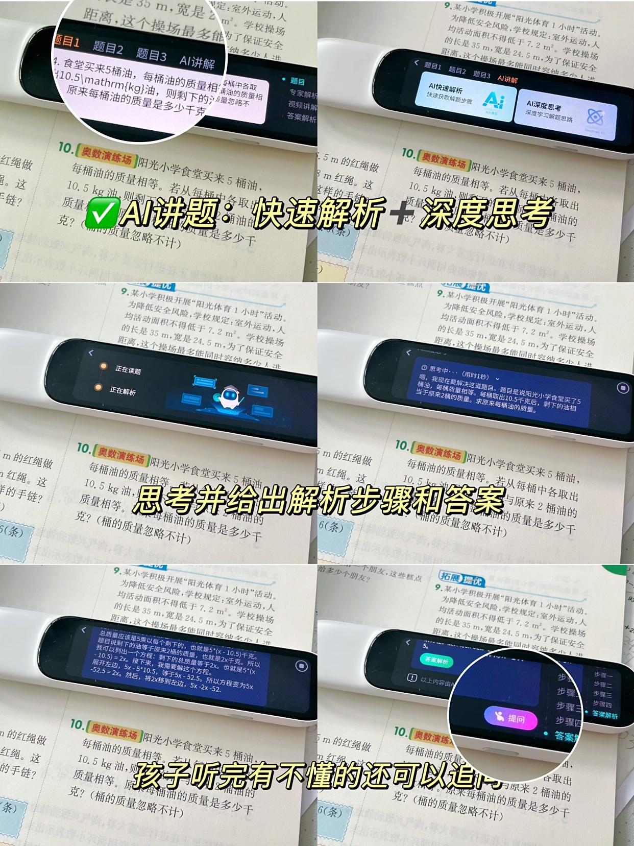 有些題還有AI解析,講的像真人老師講的一樣好。我瞭解後發現是這款詞典筆中接入了DeepSeek-R1深度推理答疑,有什麼用呢?