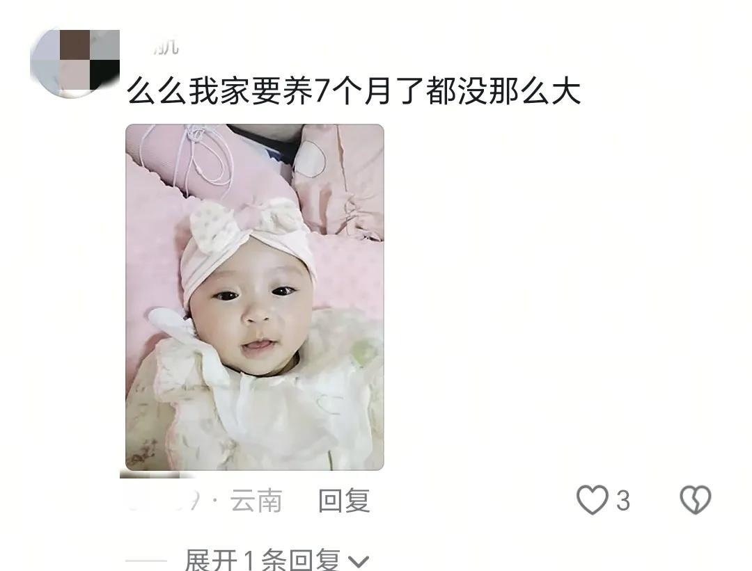 還有一個雲南的網友說自己家的孩子養了7個月都沒有這麼大。