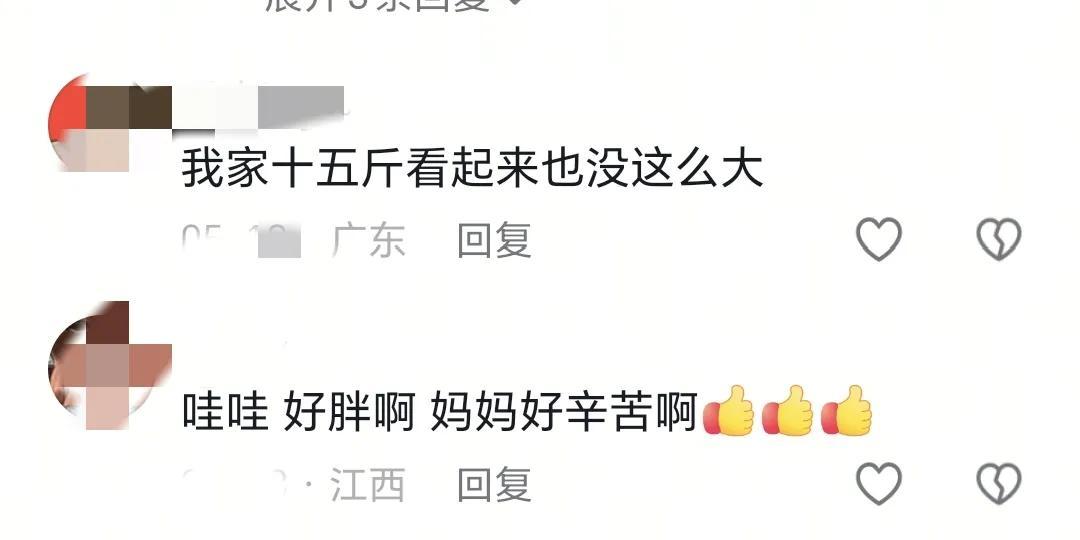 有網友說:這個好胖啊,媽媽好辛苦。還有網友說像煤氣罐罐。